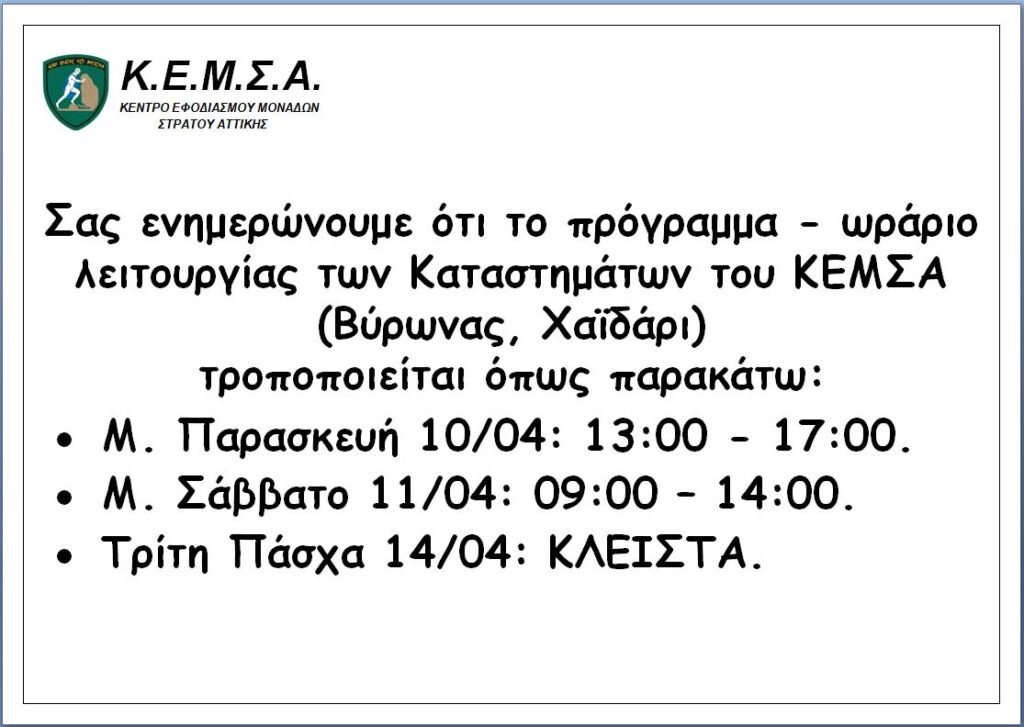 ΕΟΡΤΑΣΤΙΚΟ ΩΡΑΡΙΟ ΠΑΣΧΑ